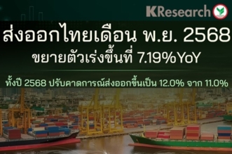ส่งออกไทย พ.ย. 68 โตแรง 7.1% คาดทั้งปีโต 12.0%