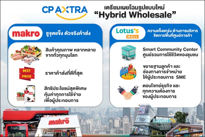 CP AXTRA เตรียมเปิดประวัติศาสตร์หน้าใหม่ ครั้งแรกของเมืองไทย โชว์จุดแข็งของทั้งแม็คโครและโลตัสมอลล์ กับ “Hybrid Wholesale” รูปแบบค้าส่งสมัยใหม่ ที่สุดของความคุ้มค่า พร้อมไลฟ์สไตล์ เพื่อผู้ประกอบการและผู้บริโภค