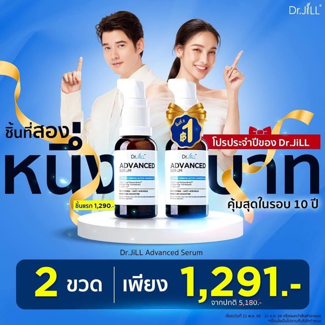 ปล่อยโปรแรงรับหยุดยาวผลิตภัณฑ์บำรุงผิวหน้า  Dr.JiLL มอบความพิเศษ 1 ปี มีครั้งเดียว เพื่อคืนกำไรให้กับลูกค้า ด้วยโปรโมชั่นชิ้นที่สอง 1 บาท กับ Dr.JiLL Advanced Serum ซื้อชิ้นแรกในราคาปกติ  พิเศษซื้อชิ้นที่สองได้ในราคาบาทเดียวเท่านั้น