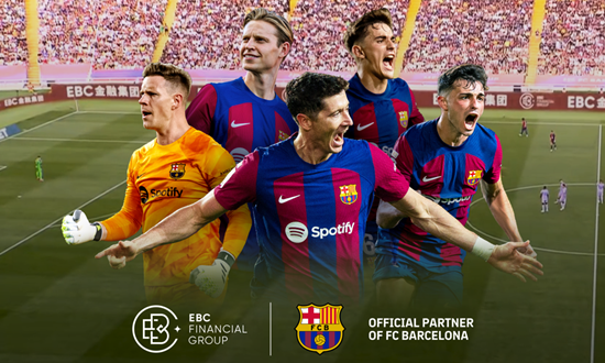 EBC Financial Group (EBC) ยังคงเสริมสร้างการร่วมมือเชิงกลยุทธ์กับสโมสรฟุตบอลระดับโลกบาร์เซโลนา (FC Barcelona) เป็นระยะเวลา 3 ปีครึ่ง ความร่วมมือนี้เริ่มตั้งแต่ เดือนเมษายน ค.ศ. 2024 และได้ยกระดับ EBC ต่อสาธารณชนทั่วโลก อีกทั้งยังเป็นบทสำคัญในการบูรณาการทางการเงินและการกีฬาอีกด้วย