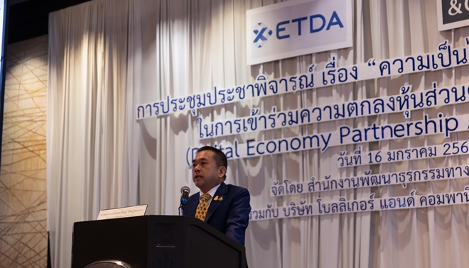 สำหรับการจัดงานในครั้งนี้ โดย ETDA ในฐานะหน่วยงานหลักที่ช่วยจับสัญญาณเพื่อสะท้อนภาพความพร้อมของประเทศ และมีการติดตามประเด็นที่เกี่ยวเนื่องมาโดยตลอด เพื่อนำเสนอผลกลารศึกษาที่เป็นประโยชน์สำหรับไทย ที่สะท้อนความเป็นไปได้และความพร้อมของประเทศในการเข้าร่วมเป็นภาคี พร้อมกับการเปิดพื้นที่รับฟังความคิดเห็นและข้อเสนอแนะจากหน่วยงานที่เกี่ยวข้อง ทั้งภาครัฐ เอกชน ภาควิชาการและภาคประชาสังคม เพื่อพิจารณาร่วมกันว่า การเข้าร่วมจะเข้ามาช่วยเร่งเครื่องความสามารถการค้าดิจิทัล และส่งผลในเชิงเศรษฐกิจอย่างไรบ้าง