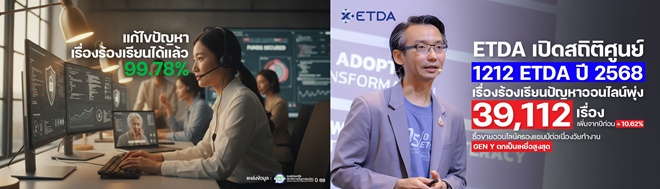 สำนักงานพัฒนาธุรกรรมทางอิเล็กทรอนิกส์ (สพธอ.) หรือ ETDA เปิดสถิติรับเรื่องร้องเรียนปัญหาออนไลน์ของศูนย์ช่วยเหลือและจัดการปัญหาออนไลน์ หรือ 1212 ETDA รอบปี 2568 พบ เรื่องร้องเรียนรวม 39,112 เรื่อง เพิ่มจากปี 2567 ถึง 3,754 เรื่อง คิดเป็น 10.62% ‘ปัญหาซื้อขายออนไลน์-เว็บเถื่อน’ ยังครองแชมป์ต่อเนื่อง กลุ่มวัยทำงาน (Gen Y และ X) เสี่ยงตกเป็นเหยื่อถูกหลอกแซงผู้สูงอายุ สูงถึง 71% ของผู้ร้องเรียนทั้งหมด เหตุทำธุรกรรมและเปิดเผยข้อมูลส่วนตัวในโลกออนไลน์เป็นประจำ พร้อมเร่งเสริมกลไกร่วมกำกับภายใต้กฎหมาย DPS ดูแล ‘สินค้า-บริการผิดกฎหมาย-ยืนยันตัวตนผู้ใช้งาน’ บนแพลตฟอร์ม ปิดช่องโหว่แก้ปมมิจฉาชีพเข้ม