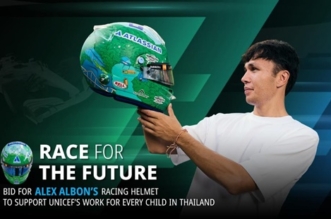“อเล็กซ์ อัลบอน”นักแข่งรถฟอร์มูล่าวัน มอบหมวกกันน็อกจาก“สิงคโปร์ กรังด์ปรีซ์” ประมูลการกุศล หนุนยูนิเซฟช่วยเด็กในไทย