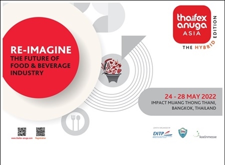 กรมส่งเสริมการค้าระหว่างประเทศ กระทรวงพาณิชย์ หอการค้าไทย และโคโลญเมสเซ่ ประเทศเยอรมนี เชิญชวนนักธุรกิจด้านอาหารและเครื่องดื่มร่วมงาน THAIFEX-ANUGA ASIA 2022 “The Hybrid Edition” งานแสดงสินค้าอาหารและเครื่องดื่มที่ยิ่งใหญ่และครบวงจรที่สุดแห่งเอเชีย ที่กลับมาจัดอย่างยิ่งใหญ่อีกครั้งในรูปแบบ On Ground Trade Show และ Virtual Trade Show ระหว่างวันที่ 24-28 พฤษภาคม 2565 เพื่อเปิดเวทีการค้าระดับโลกให้ผู้ประกอบการในอุตสาหกรรมอาหารและเครื่องดื่มจากประเทศต่าง ๆ ได้มาเจรจาธุรกิจ สร้างโอกาสใหม่ทางการตลาด ค้นหานวัตกรรม เทคโนโลยี และแรงบันดาลใจใหม่ และงานนี้ยังมีส่วนช่วยผลักดันให้ไทยเป็นศูนย์กลางอาหารของโลกตามนโยบายอาหารไทยอาหารโลกของรองนายกรัฐมนตรีและรัฐมนตรีว่าการกระทรวงพาณิชย์ จุรินทร์ ลักษณวิศิษฏ์