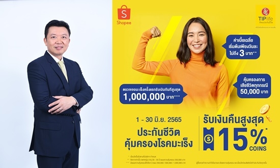 ทิพยประกันชีวิต ร่วมกับ ช้อปปี้ (Shopee) ผู้นำแพลตฟอร์มอีคอมเมิร์ซในภูมิภาคเอเชียตะวันออกเฉียงใต้และไต้หวัน เฉลิมฉลองกับมหกรรมสุดยิ่งใหญ่ “Shopee 6.6 Greatest Brands Celebration แบรนด์ดัง ดีลปังทะลุโลก” ส่งโปรดียืน 1 พร้อมด้วยสิทธิพิเศษเอาใจขาช้อปออนไลน์ เพื่อเป็นการวางแผนทางด้านการเงิน และค่าใช้จ่ายในการรักษาโรคมะเร็ง ด้วยผลิตภัณฑ์ TIPlife Smart Cancer ประกันชีวิตคุ้มครองโรคมะเร็งทุกระยะ กับโปรโมชั่นสุดพิเศษ รับ Coin Cashback 15% พร้อมให้ช้อปกันง่าย ๆ ได้แล้วที่ร้านค้าออฟฟิเชียลสโตร์ TIPlife_official บน Shopee Mall ตั้งแต่วันที่ 1 – 30 มิถุนายน 2565 นี้