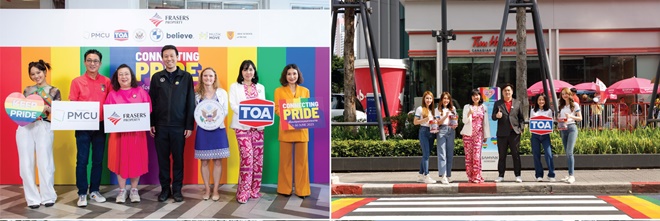 บริษัท ทีโอเอ เพ้นท์ (ประเทศไทย) จำกัด (มหาชน) หรือ TOA ร่วมเฉลิมฉลอง Pride Month เดือนแห่งความภาคภูมิใจของความหลากหลายทางเพศ เพื่อเป็นส่วนหนึ่งในการขับเคลื่อนให้เกิดการยอมรับในสังคม ทั้งด้านสิทธิมนุษยชน เสรีภาพ ความเท่าเทียมและเป็นธรรม เพื่อให้กลุ่ม LGBTQIA+ มีความภาคภูมิใจกล้าที่จะยืนยัดแสดงตัวตนอย่างสร้างสรรค์ ล่าสุดได้ร่วมกับ เฟรเซอร์ส พร็อพเพอร์ตี้ (ประเทศไทย) และ สำนักงานจัดการทรัพย์สิน จุฬาลงกรณ์มหาวิทยาลัย (PMCU) เนรมิตทุกพื้นที่ของสามย่าน มิตรทาวน์แบบจัดเต็ม ด้วยสีสัน Pride Color เพื่อเป็นจุดเช็คอินดิสติเนชั่นของชาว LGBTQIA+ และ Pride Crosswalk ทางม้าลายสีรุ้ง ตอกย้ำเคมเปญ Connecting Pride เชื่อมทุกความหลากหลาย #KeepPride #ConnectingDiversity ตลอดเดือนมิถุนายนนี้