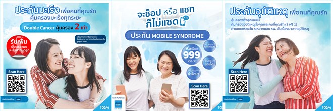บริษัท ทีคิวเอ็ม คอร์ปอเรชั่น จำกัด (มหาชน) โดย ทีคิวเอ็ม อินชัวร์รันส์ โบรคเกอร์ หรือ TQM ออกแคมเปญต้อนรับเดือนแห่งวันแม่ ออกแบบประกัน TQM FOR MOM ด้วยคอนเซ็ปต์ ‘Only One Only Mom แม่คือโลกทั้งใบ ฝากความห่วงใยให้ประกันดูแล’ เพื่อเป็นของขวัญแทนความห่วงใยที่ลูกสามารถส่งมอบให้แม่หรือคนที่รักที่สุดในชีวิตเป็นตัวแทนดูแลกันในยามที่ต้องห่างไกล โดยประกัน TQM FOR MOM ประกอบด้วยแผนประกันภัยที่ออกแบบมาสำหรับแม่และผู้หญิงทุกคน ได้แก่ ประกันอุบัติเหตุเพื่อคนที่คุณรัก ซื้อ 1 คุ้มครอง 2 ลูกซื้อแต่คุ้มครองทั้งลูกและแม่ คุ้มครองค่ารักษาพยาบาลสูงสุด 50,000 บาทต่อครั้ง มีค่าชดเชยรายวันระหว่างนอนโรงพยาบาล ประกันมะเร็งเพื่อคนที่คุณรัก คุ้มครองมะเร็งทุกระยะ มีเงินช่วยเหลือรายเดือนสูงสุด 40,000 บาท (6 เดือน) คุ้มครอง 2 เท่าเมื่อตรวจพบมะเร็งเฉพาะผู้หญิง มะเร็งมดลูก มะเร็งปากมดลูก มะเร็งเต้านม และมะเร็งรังไข่ ประกัน Mobile Syndrome คุ้มครองโรคฮิตติดมือถืออาการ Mobile Syndrome พร้อมค่ารักษาพยาบาล ที่ครอบคลุมทุกความต้องการ สูงสุด 200,000 บาทต่อครั้ง เบี้ยเริ่มต้น 999 บาทต่อปี